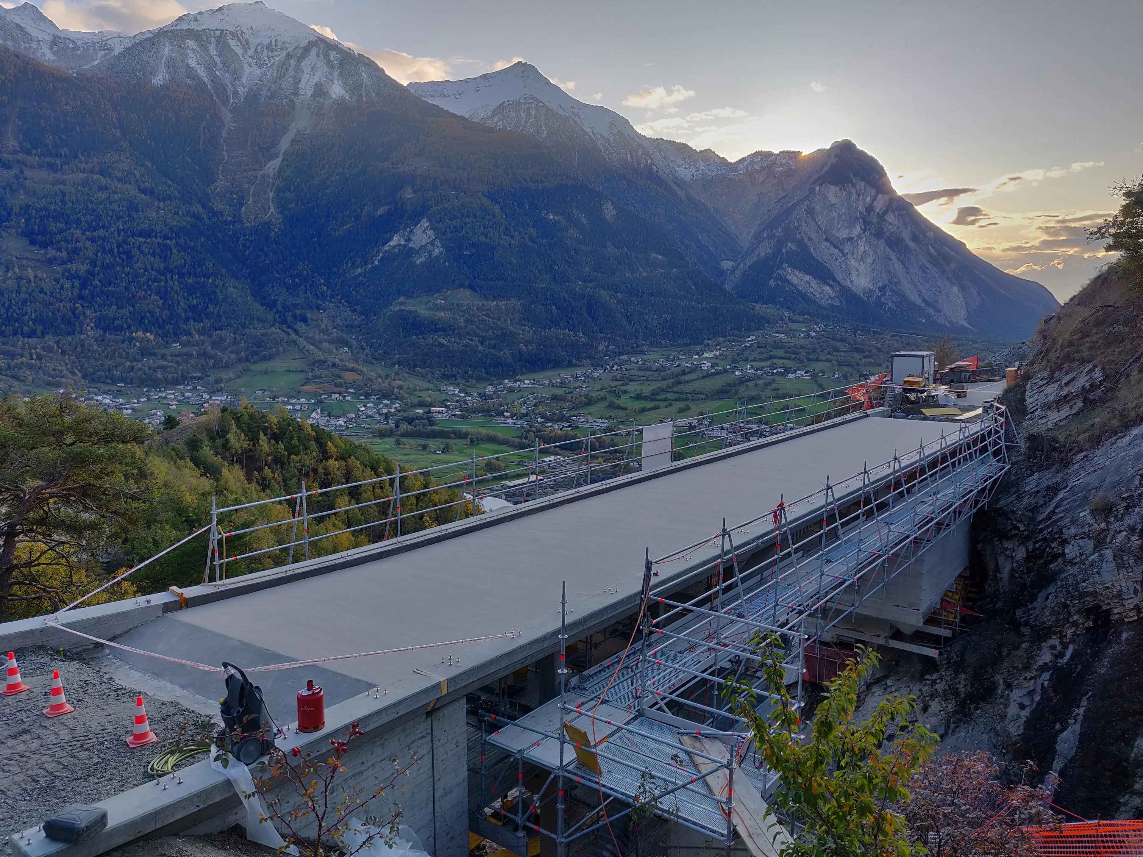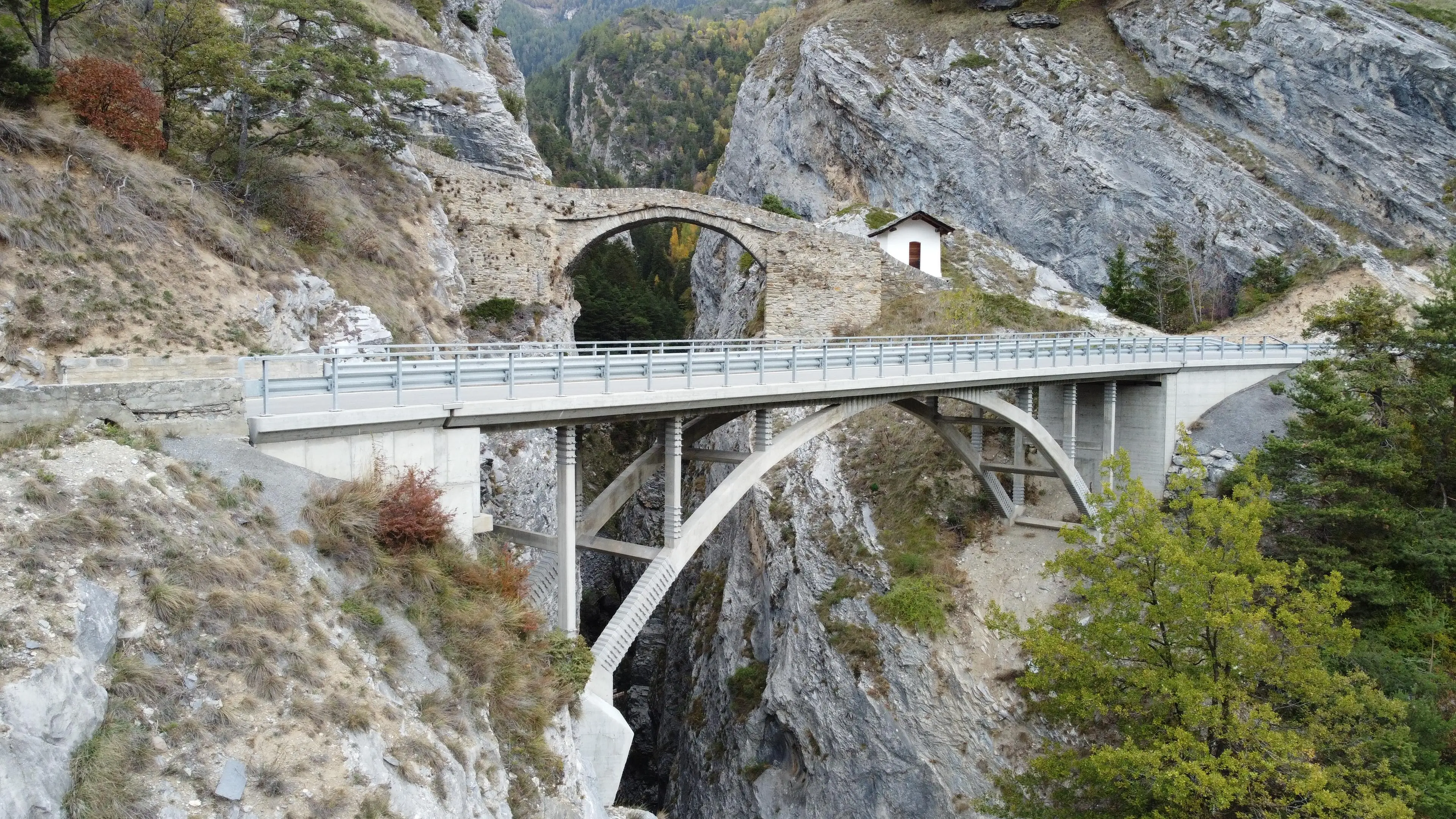 Die Brücke über den Feschelbach befindet sich auf der Strasse Leuk - Bratsch - Erschmatt und wurde im Jahr 1955 erbaut. Die Brücke in der ursprünglichen Form bestand aus einer Bogenbrücke und einem kleinen, direkt an der Bogenbrücke anschliessenden schwimmend gelagerten Lehnenviadukt. Die Gesamtlänge des Bauwerks beträgt ca. 50 m. Die durchgeführte Zustandsuntersuchung des Bauwerks zeigte auf, dass die Bausubstanz der Brücken wesentliche Mängel aufwies und sich eine Instandsetzung aufgedrängte. Aufgrund statischer Mängel wurde im Konzept vorgeschlagen die Brückenplatte mittels eines Überbetons zu verstärken und neue Konsolen zu erstellen. Zudem waren generelle Instandsetzungsarbeiten an der Untersicht der Brückenplatte, den Bögen und Kämpferfundamenten sowie den Widerlagerwänden erforderlich. Im Rahmen des Massnahmenprojekts wurde entschieden, das an die Bogenbrücke anschliessende Lehnenviadukt abzubrechen, um den Strassenverlauf zu optimieren und an die aktuellen Normen anzupassen.