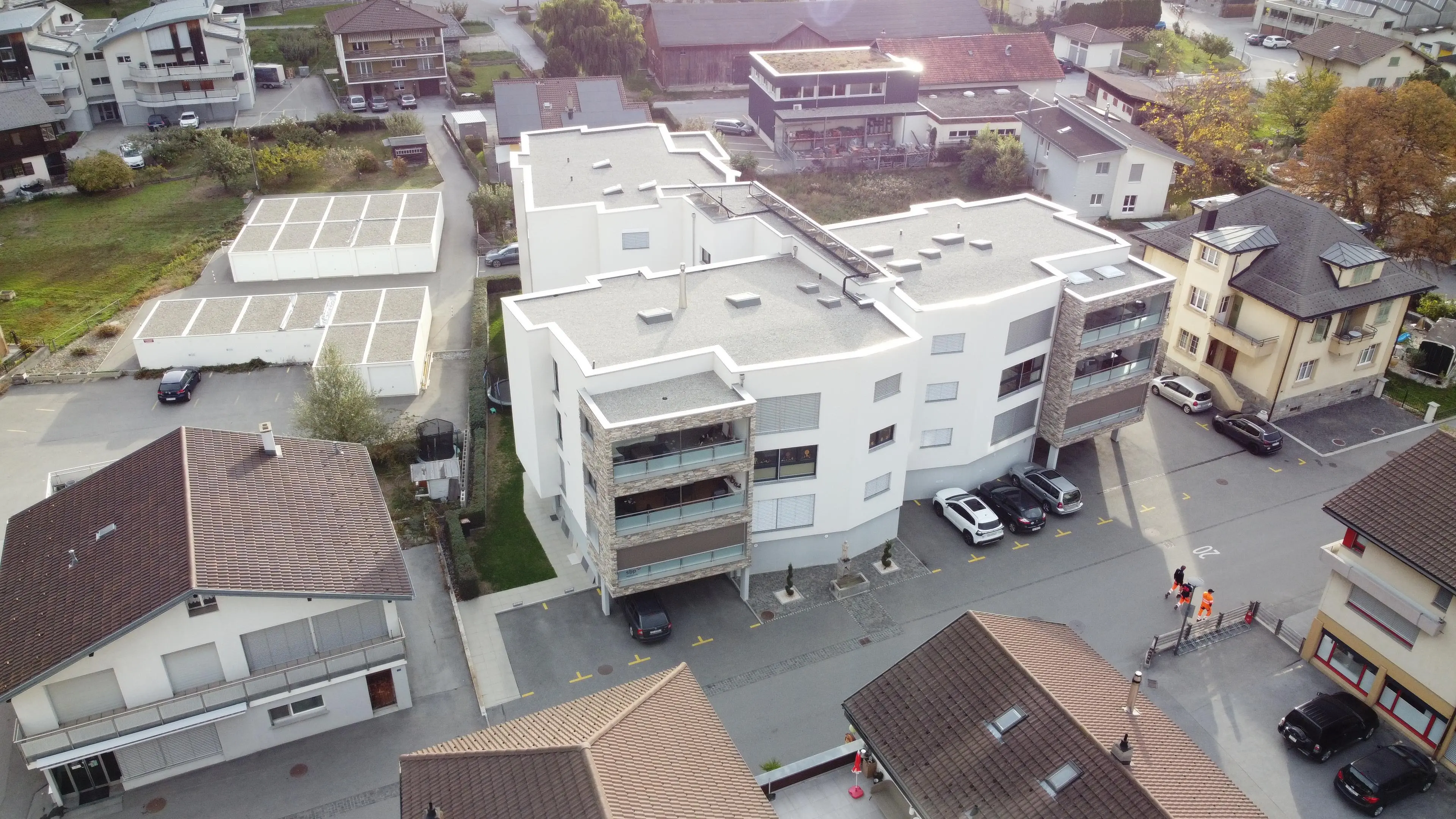 Die gesamte Überbauung umfasst 9 x 6 Zimmerwohnungen. Die Neubauten sind alle entsprechend den aktuellen sia-Normen auf die zu berücksichtigenden Erdbebeneinwirkungen ausgelegt.
