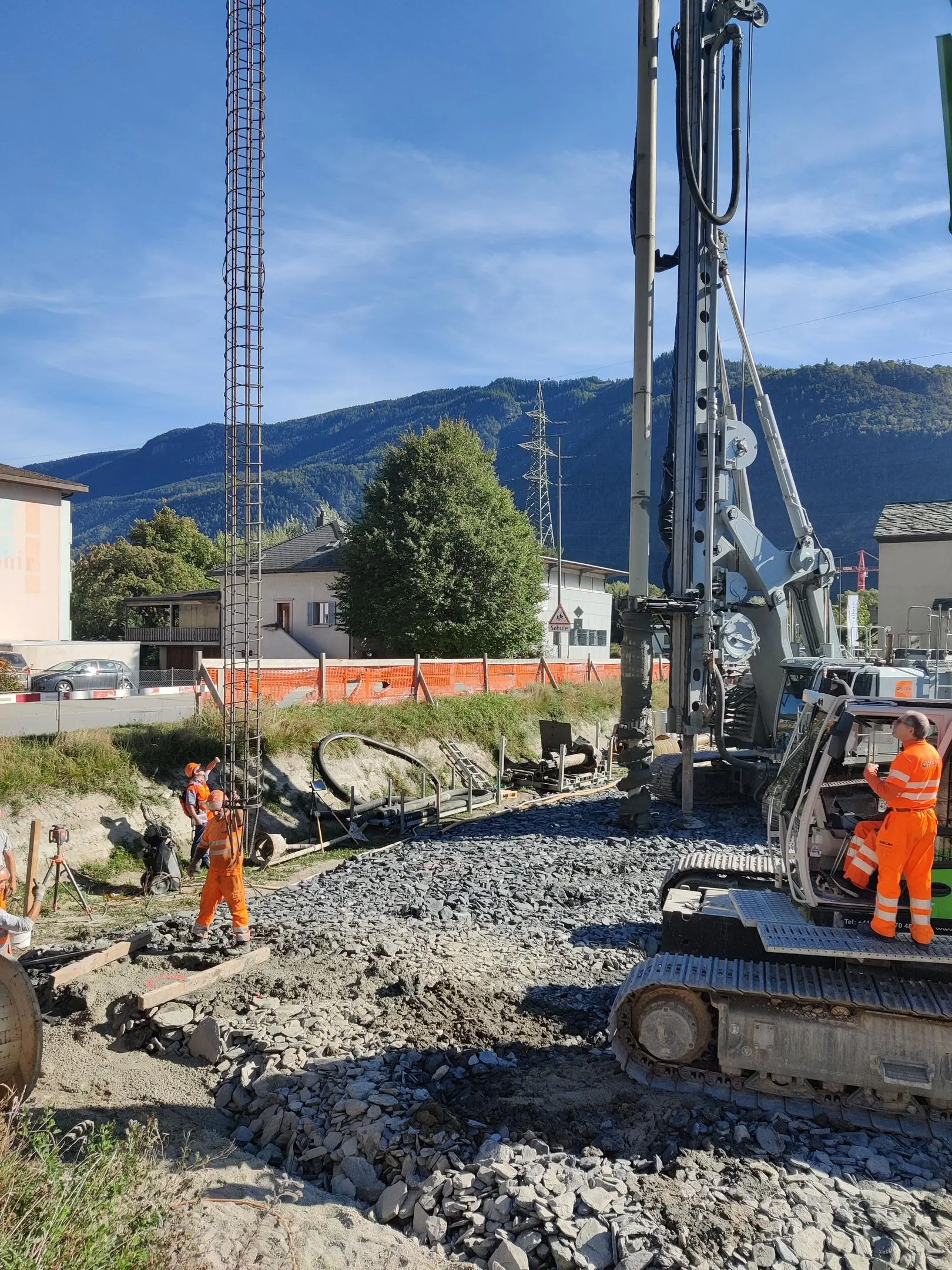 Das Bauwerk wurde auf einem ungleichmässigen und setzungsempfindlichen Untergrund errichtet, weshalb eine Pfahlgründung zur Gewährleistung der Stabilität notwendig wurde. Um den unterschiedlichen Setzungen entgegenzuwirken, erfolgte eine getrennte Fundierung für den Garagentrakt und das Hauptgebäude. Diese Maßnahme minimiert potenzielle Schäden durch Setzungen und gewährleistet eine langfristige strukturelle Integrität.