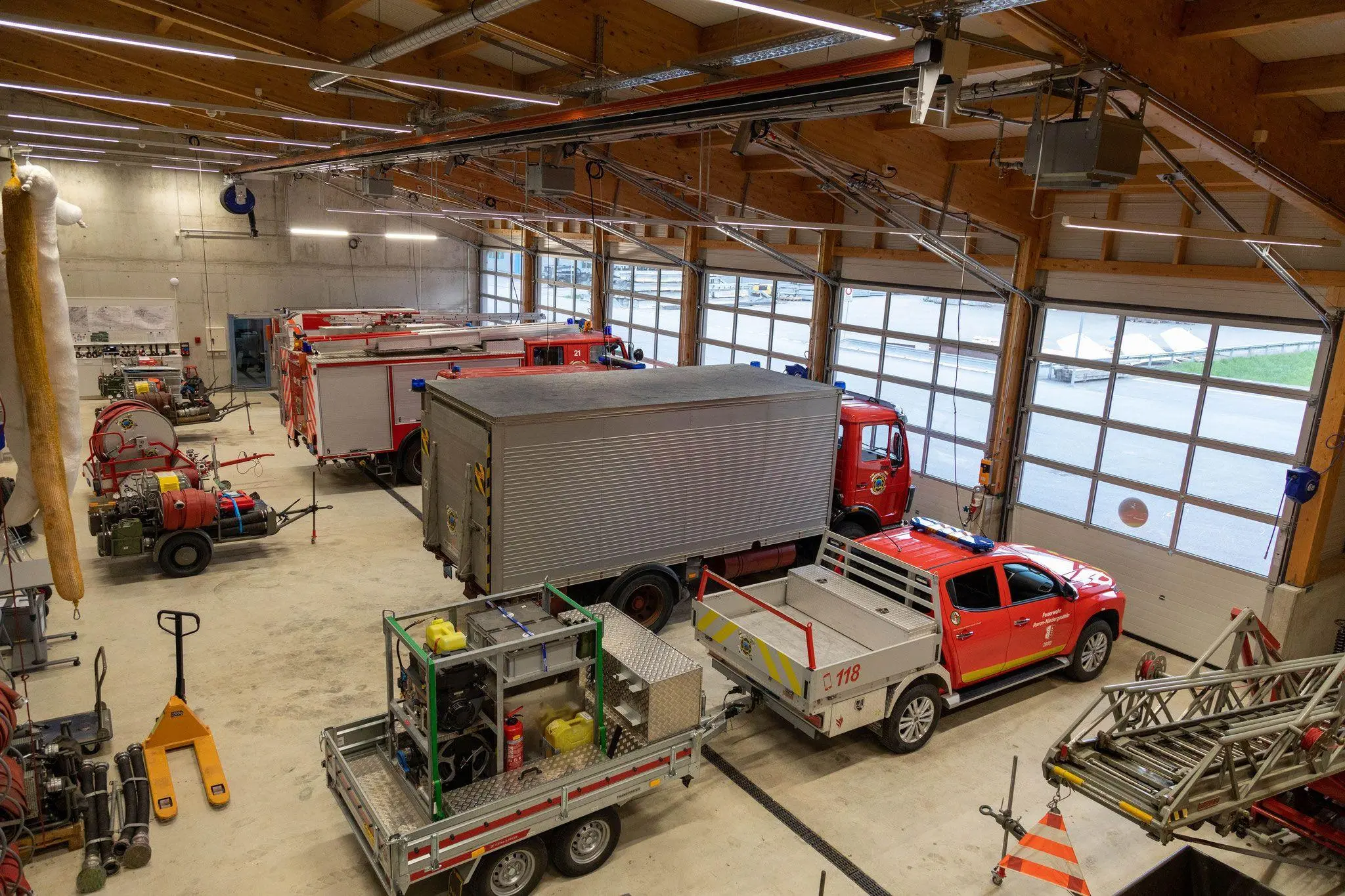 Das neue Werkhof- und Feuerwehrgebäude repräsentiert eine zukunftsweisende Lösung für die begrenzten Raumkapazitäten des alten Feuerwehrlokals und Werkhofs, die sich als zu klein erwiesen. Durch den Neubau an einem optimalen Standort in der Industriezone wird nicht nur ausreichend Platz geschaffen, sondern auch eine verbesserte Erreichbarkeit von industriellen Einrichtungen und Wohngebieten gewährleistet. Das architektonische Konzept orientiert sich an modernen Standards und ermöglicht eine effiziente Raumnutzung für Feuerwehrfahrzeuge, Rettungsausrüstung und Schulungsbereiche. Diese strukturelle Optimierung fördert die gemeinsame Nutzung von Ressourcen und steigert somit die Effizienz der Feuerwehraktivitäten und des Werkhofes.